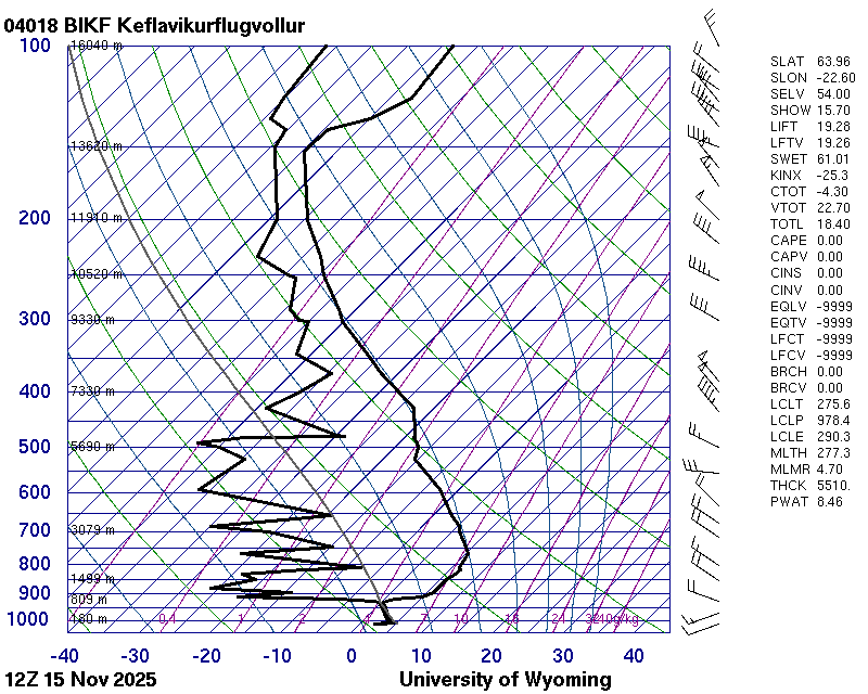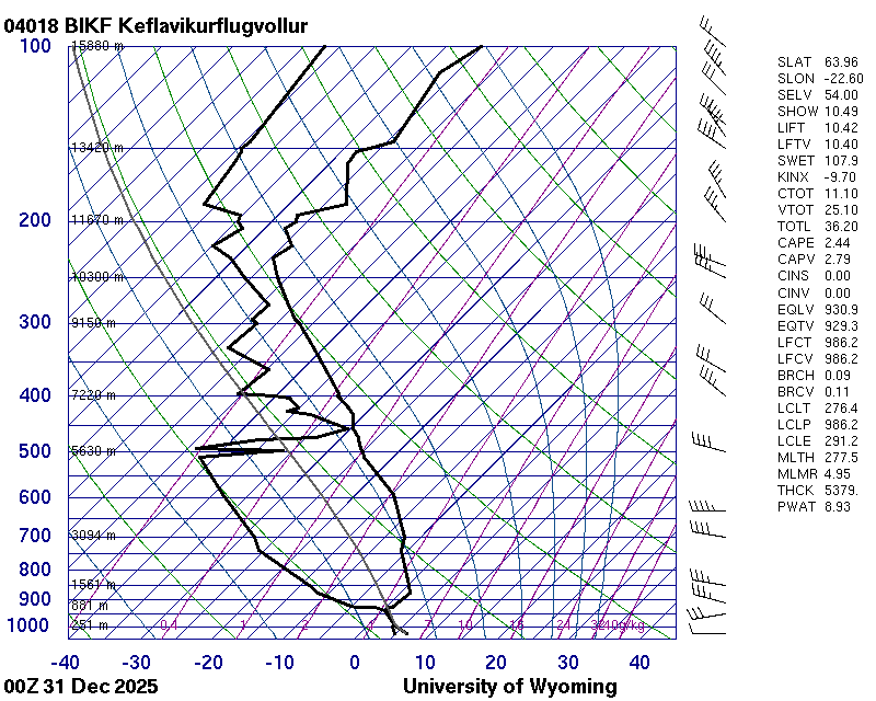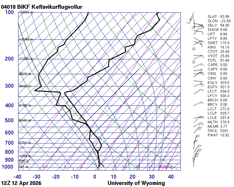 Þetta háloftaveður er reiknað af Háskólanum í Wyoming.