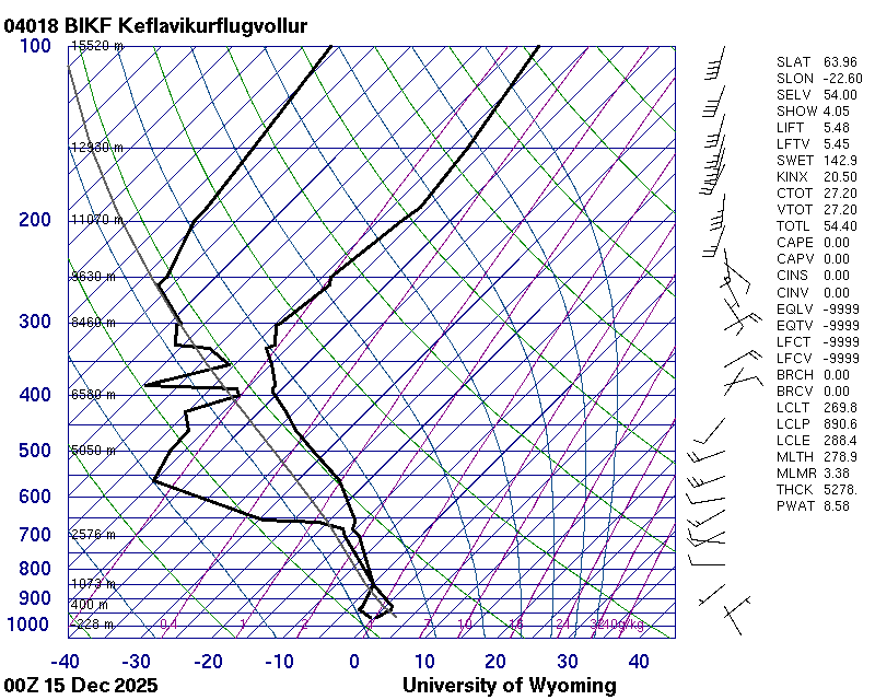 Þetta háloftaveður er reiknað af Háskólanum í Wyoming.