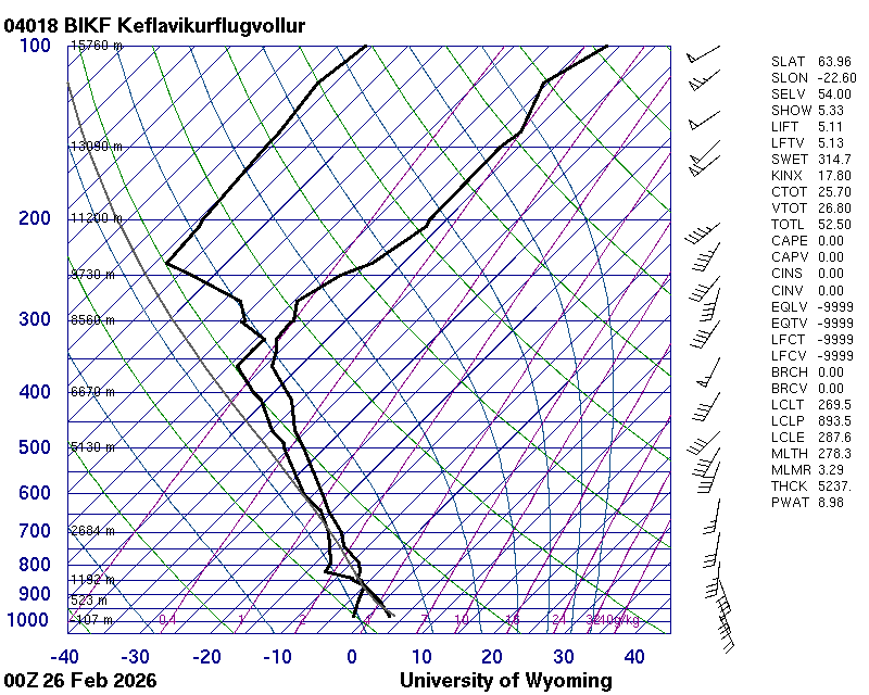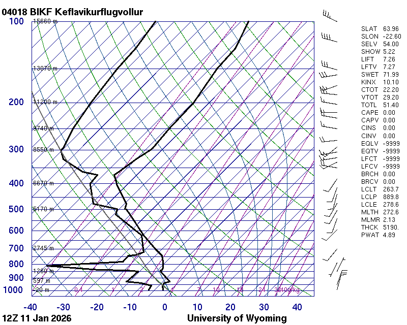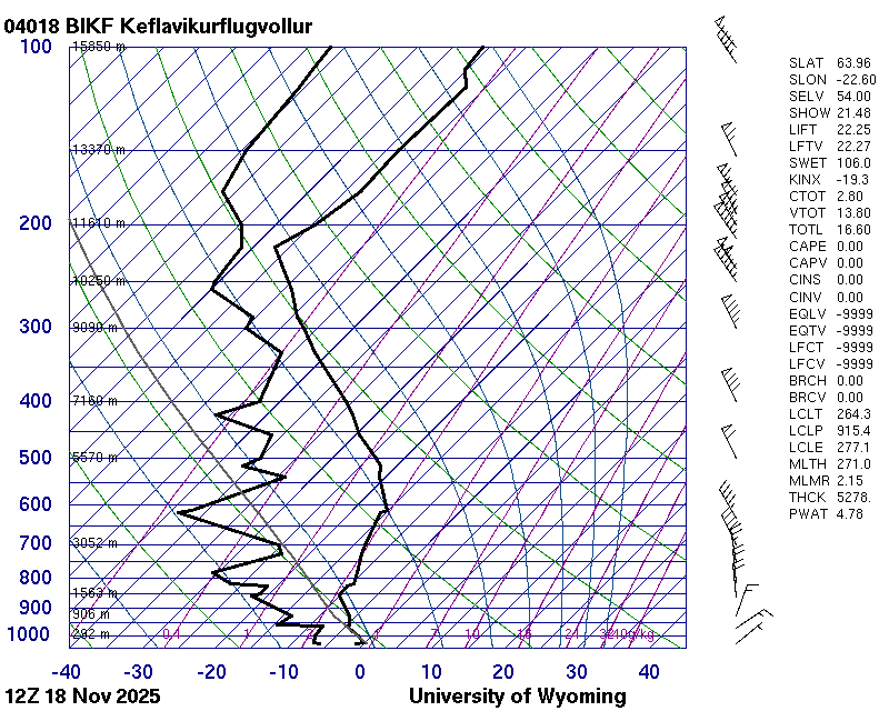 Þetta háloftaveður er reiknað af Háskólanum í Wyoming.
