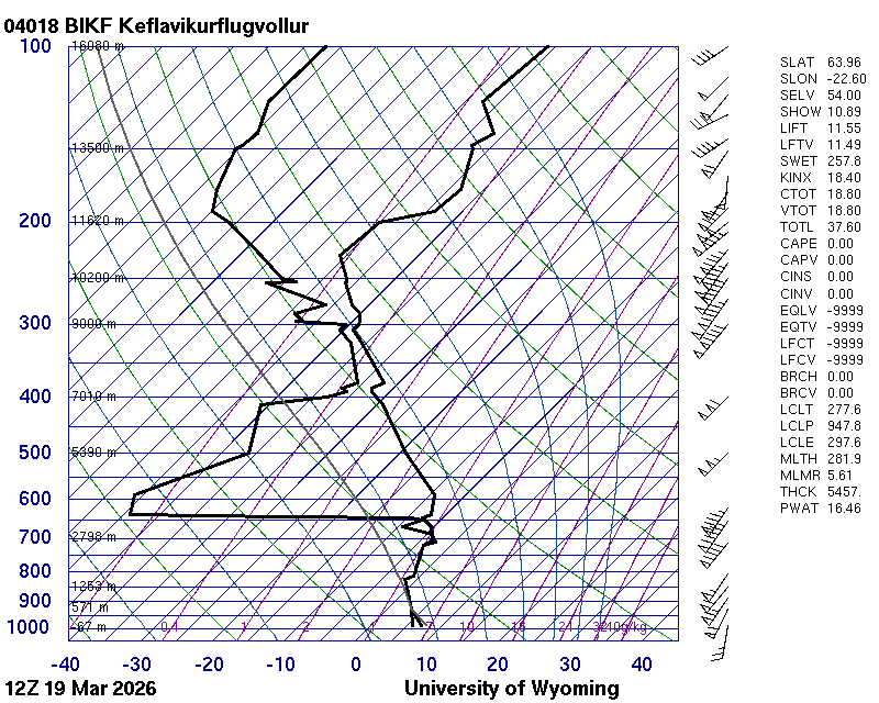 Þetta háloftaveður er reiknað af Háskólanum í Wyoming.
